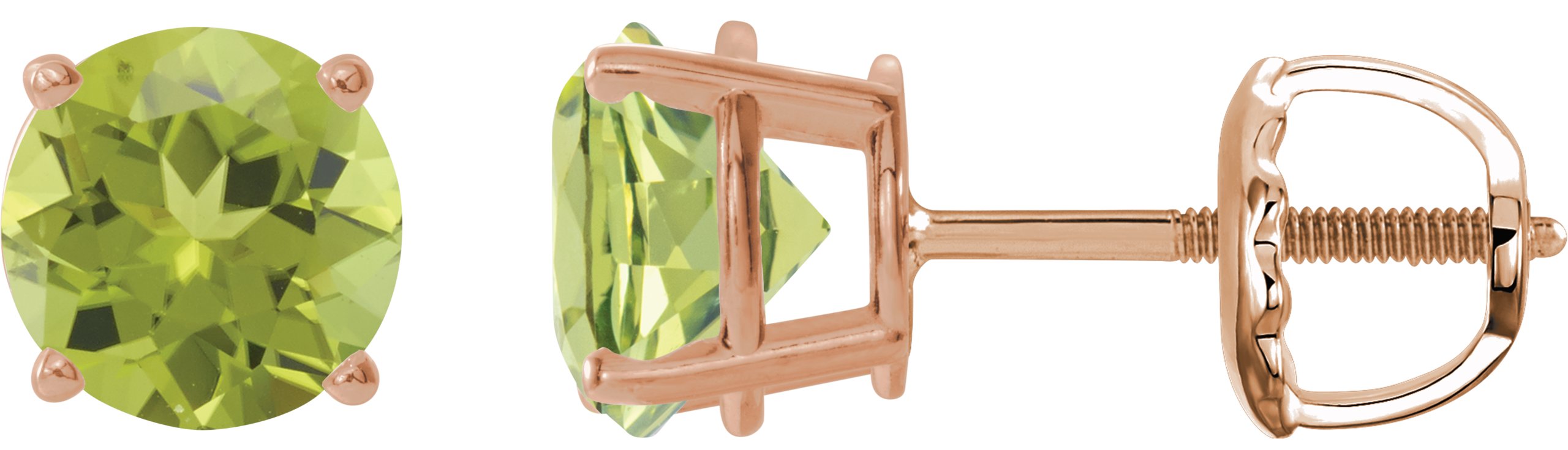 14K Rose 6 mm Natural Peridot Stud Earrings