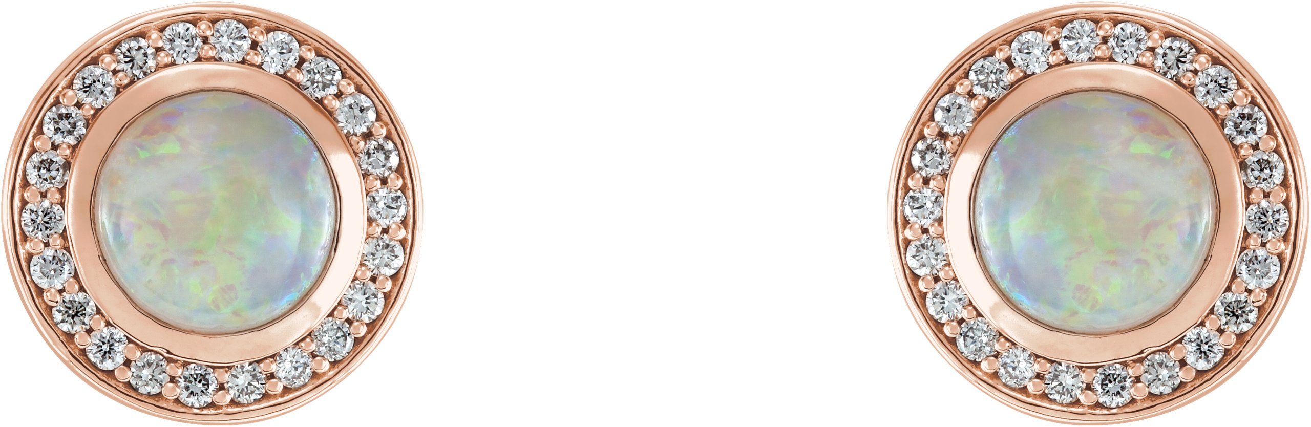 14K Rose 6 mm Opal and .20 CTW Diamond Halo Style Earrings