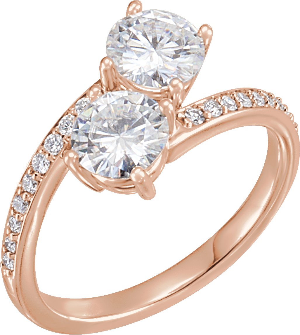 14K Rose 6 mm Round Forever One™ Moissanite & 1/5 CTW Diamond Ring