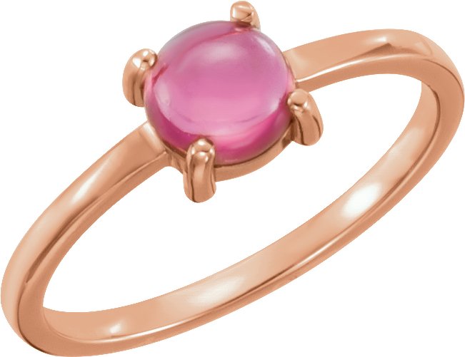 14K Rose 6 mm Round Pink Tourmaline Cabochon Ring