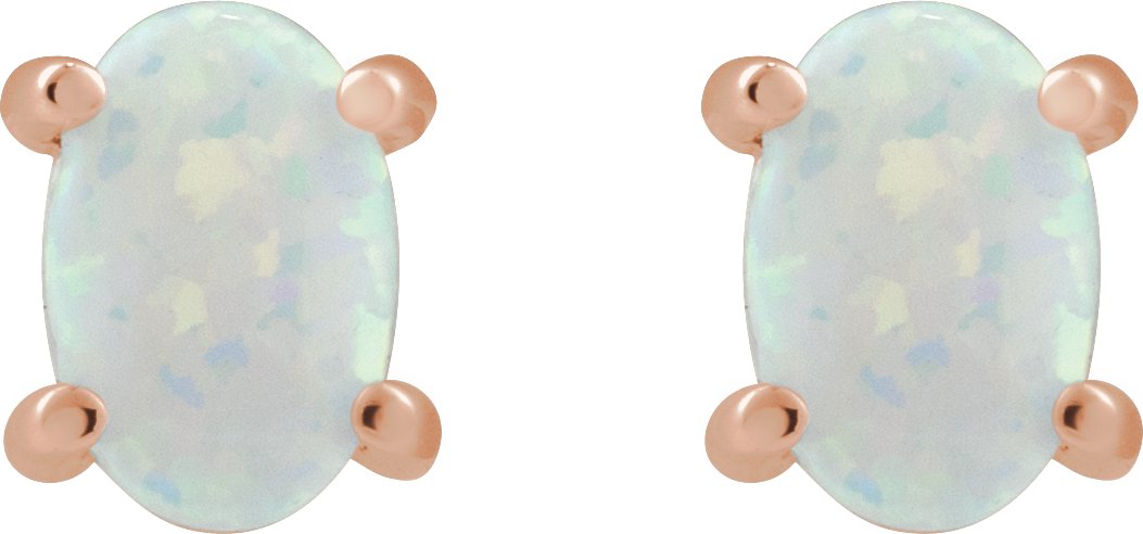 14K Rose 6x4 mm Oval Lab-Grown White Opal Earrings