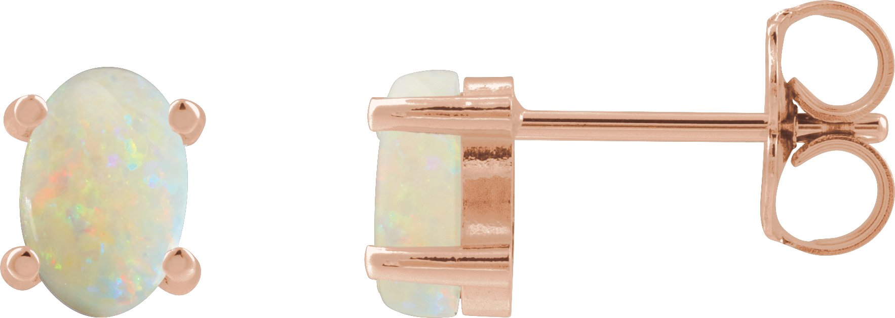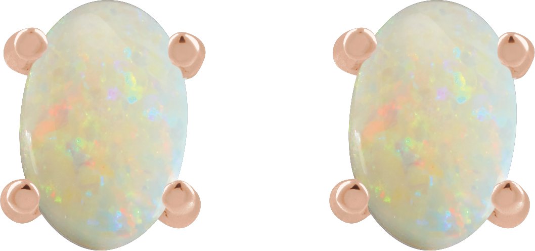 14K Rose 6x4 mm Oval Natural White Opal Earrings