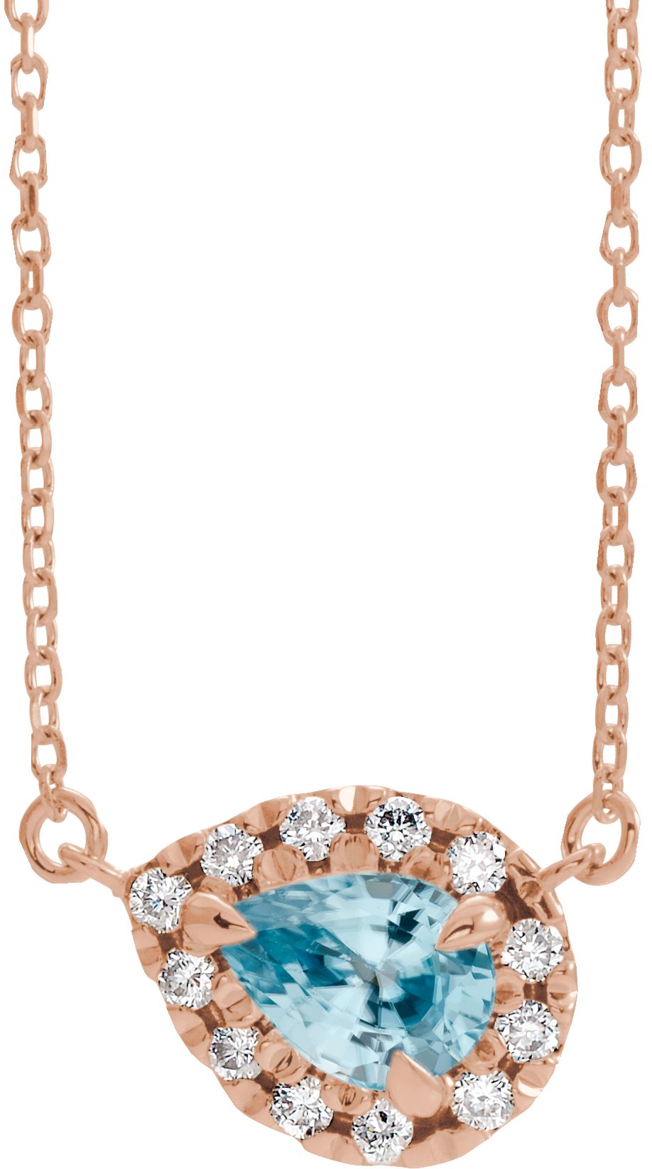 14K Rose 6x4 mm Pear Aquamarine & 1/6 CTW Diamond 16" Necklace Ref. 16213258
