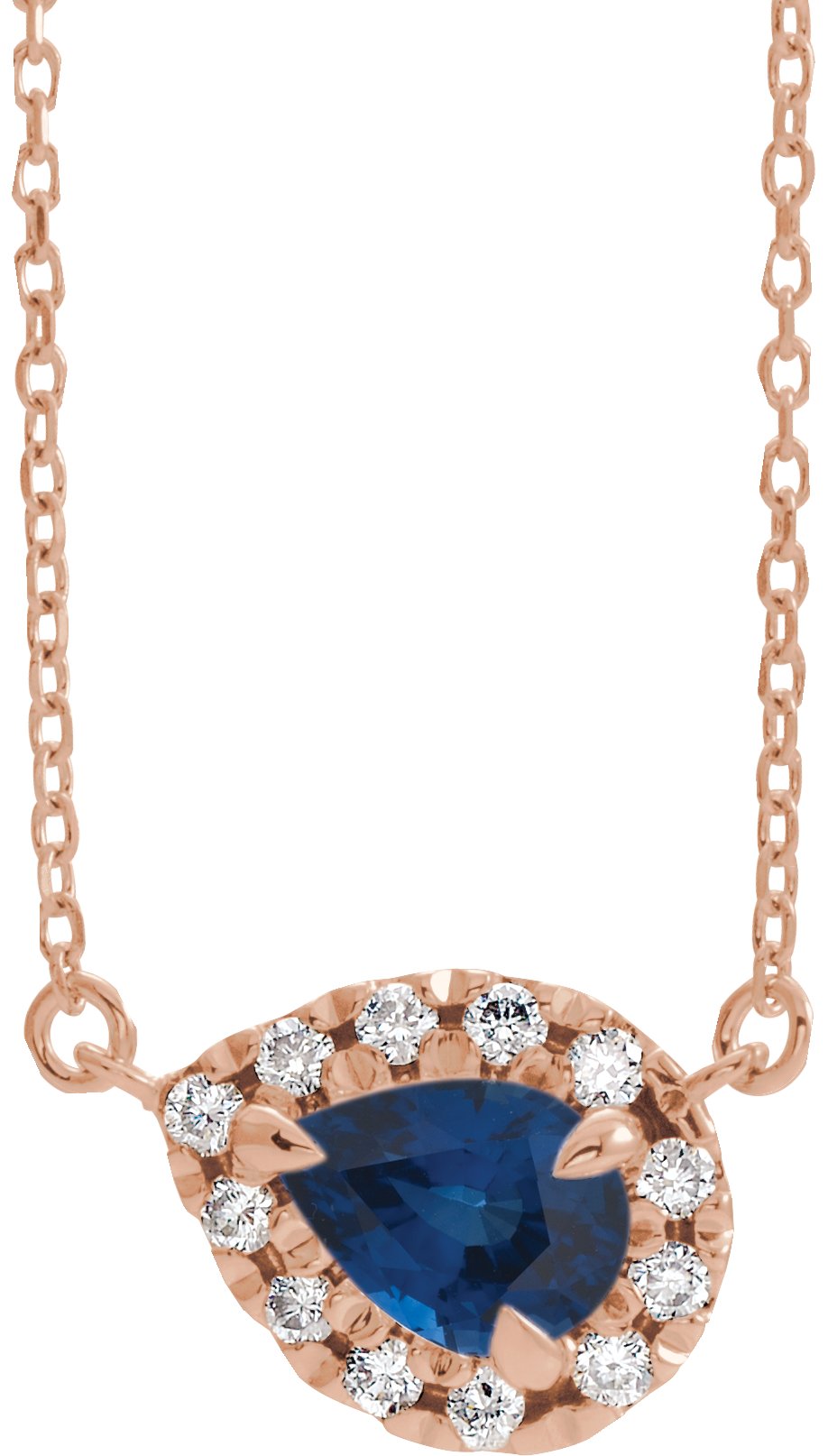 14K Rose 6x4 mm Pear Blue Sapphire & 1/6 CTW Diamond 16" Necklace Ref. 16213259