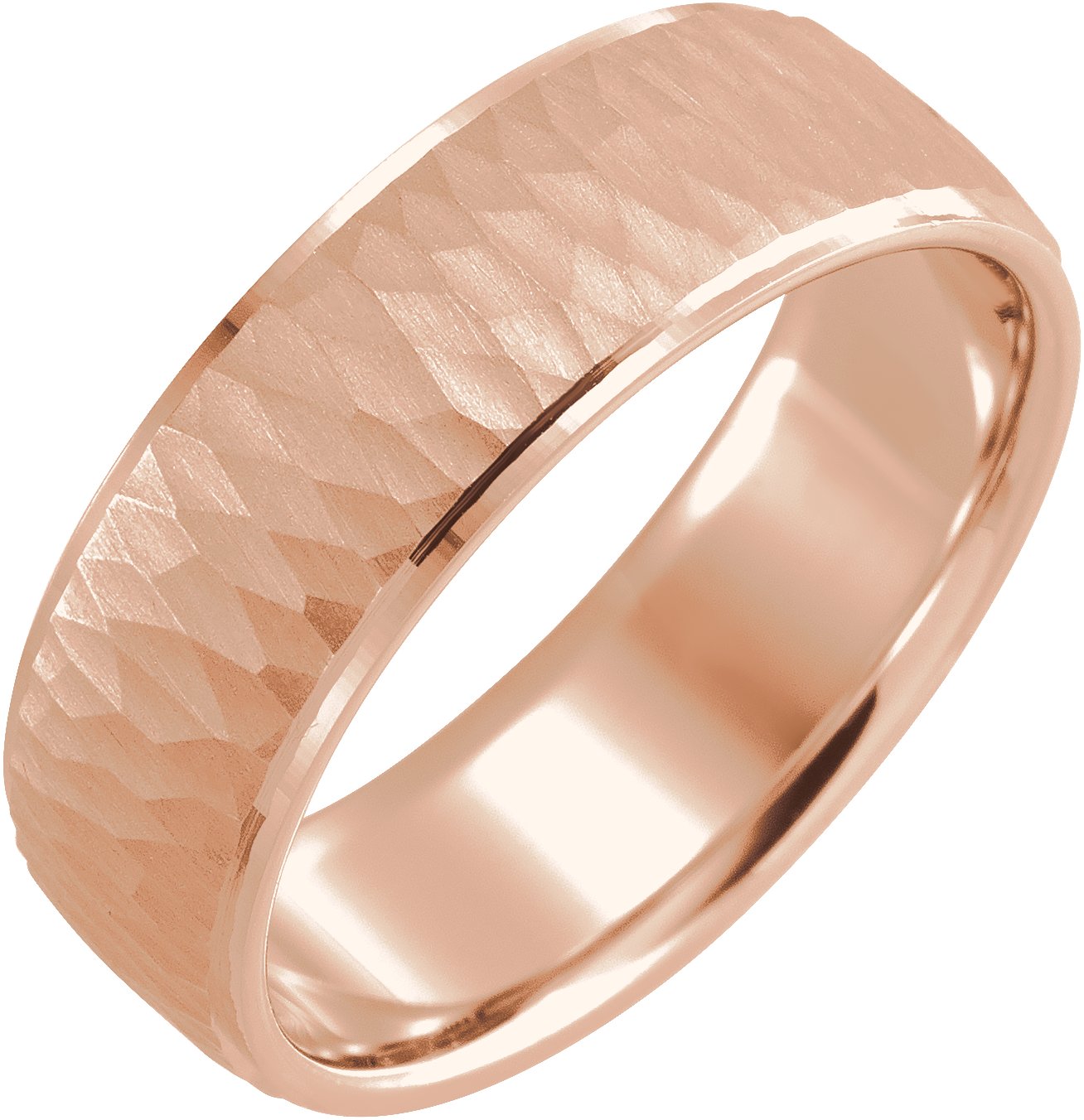 14K Rose 7 mm Beveled Edge Band with Hammer Finish Size 11 Ref 16076392