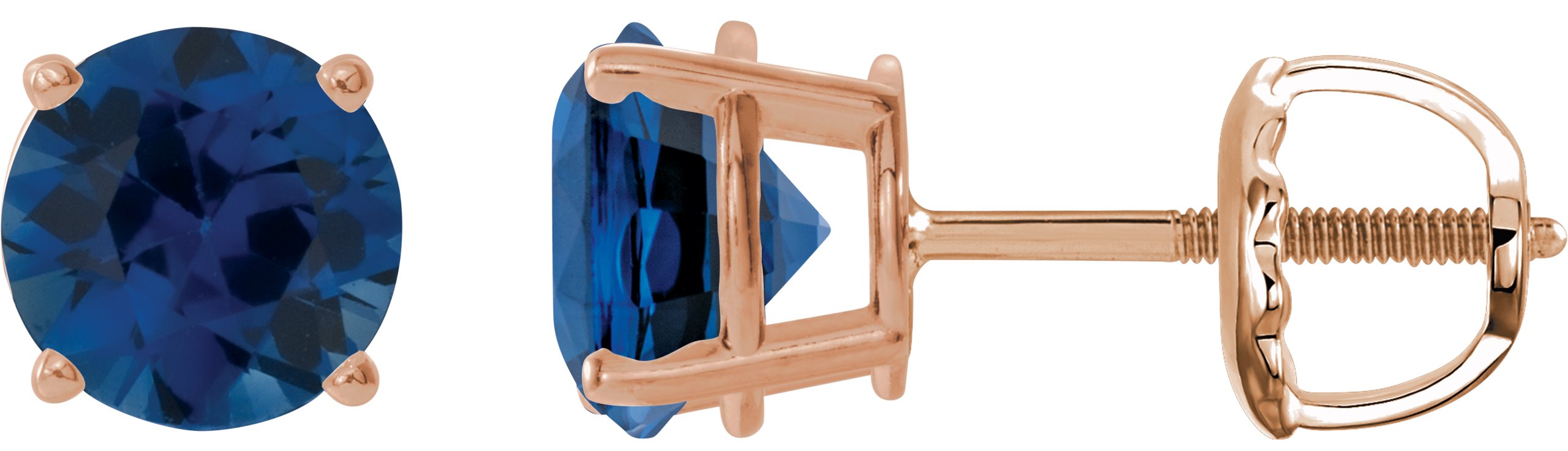 14K Rose 7 mm Lab-Grown Blue Sapphire Stud Earrings