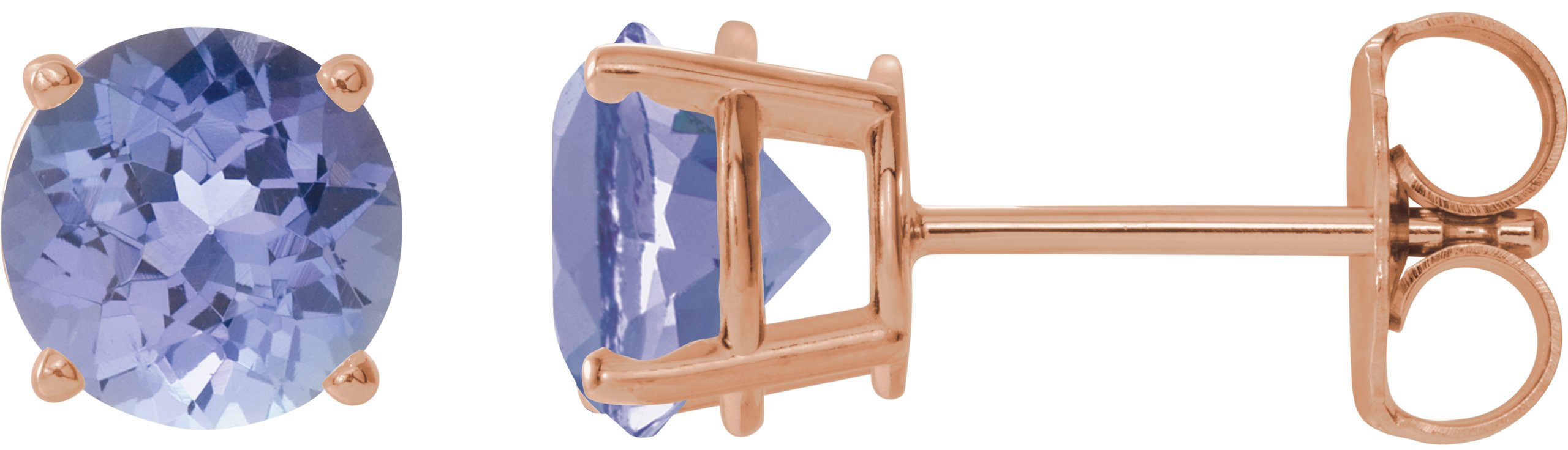 14K Rose 7 mm Natural Tanzanite Stud Earrings