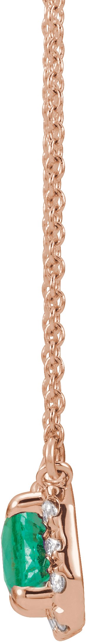 14K Rose 7x5 mm Emerald Chatham Lab Created Emerald & 1/5 CTW Diamond 18 inch Necklace