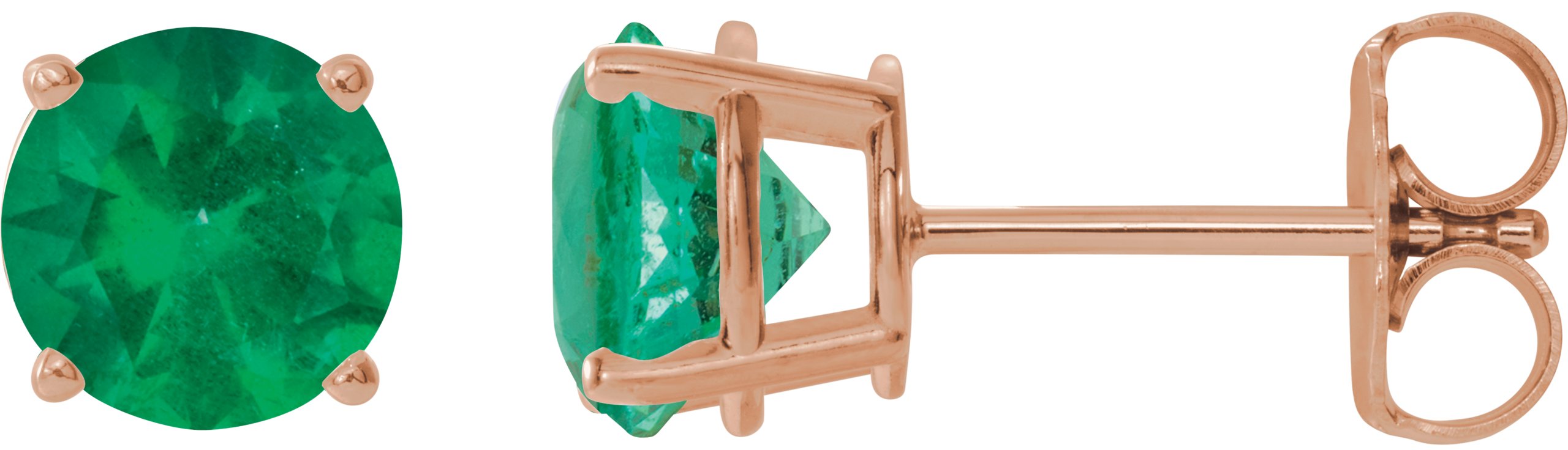 14K Rose 8 mm Lab-Grown Emerald Stud Earrings