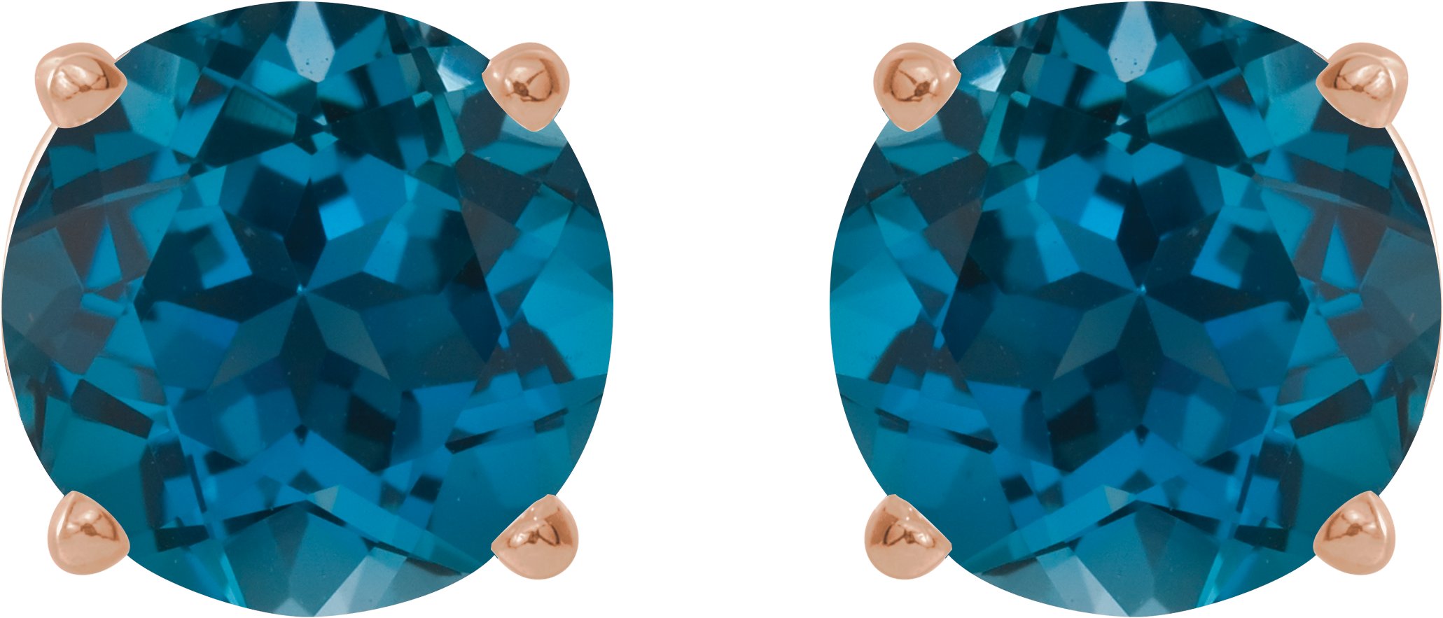 14K Rose 8 mm Natural London Blue Topaz Stud Earrings