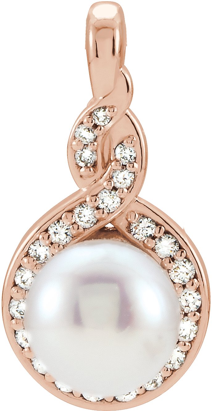 14K Rose Akoya Cultured Pearl & 1/10 CTW Diamond Pendant