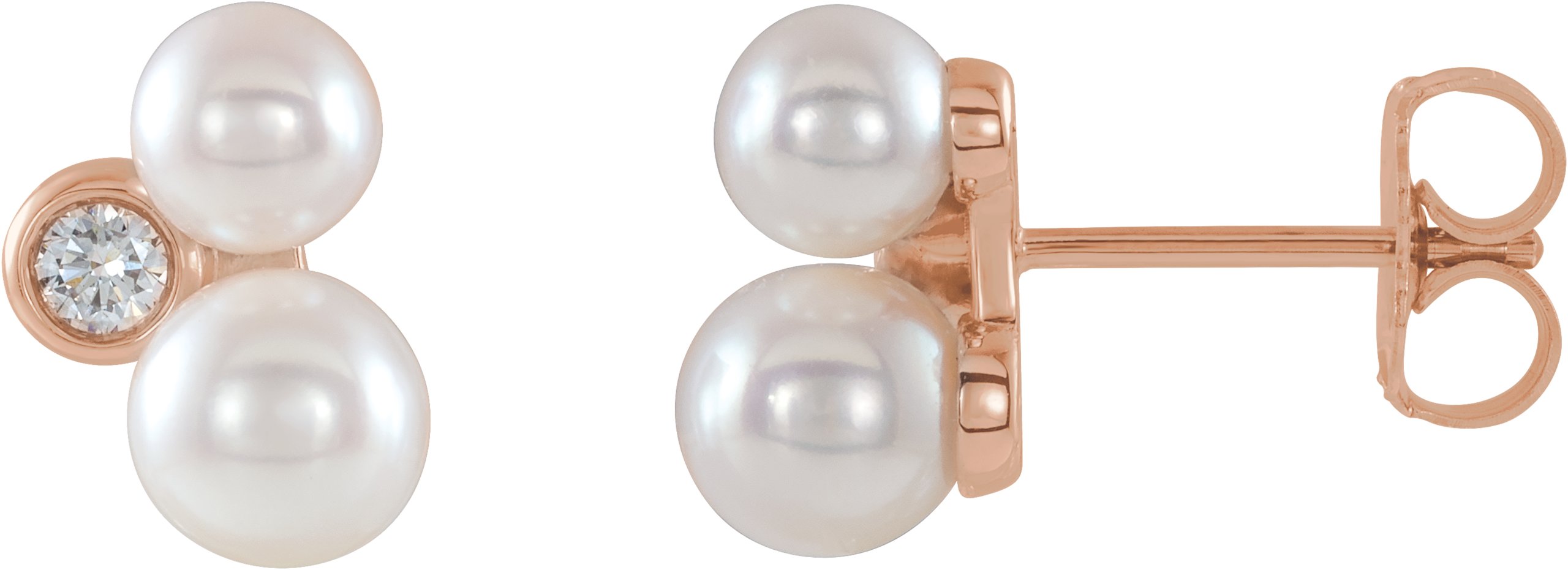 14K Rose Akoya Cultured Pearl & 1/8 CTW Diamond Earrings