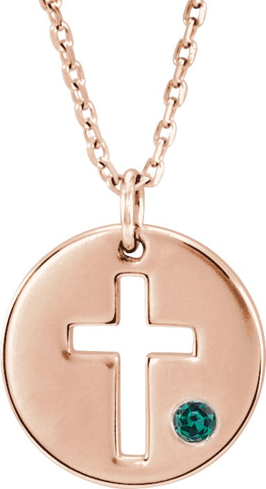 14K Rose Alexandrite Pierced Cross Disc 16 18" Necklace Ref. 13377636