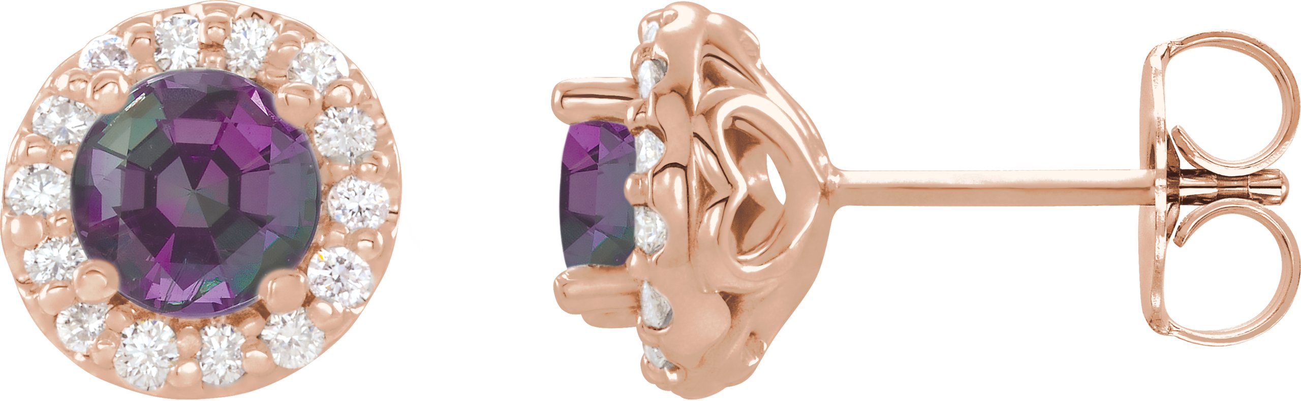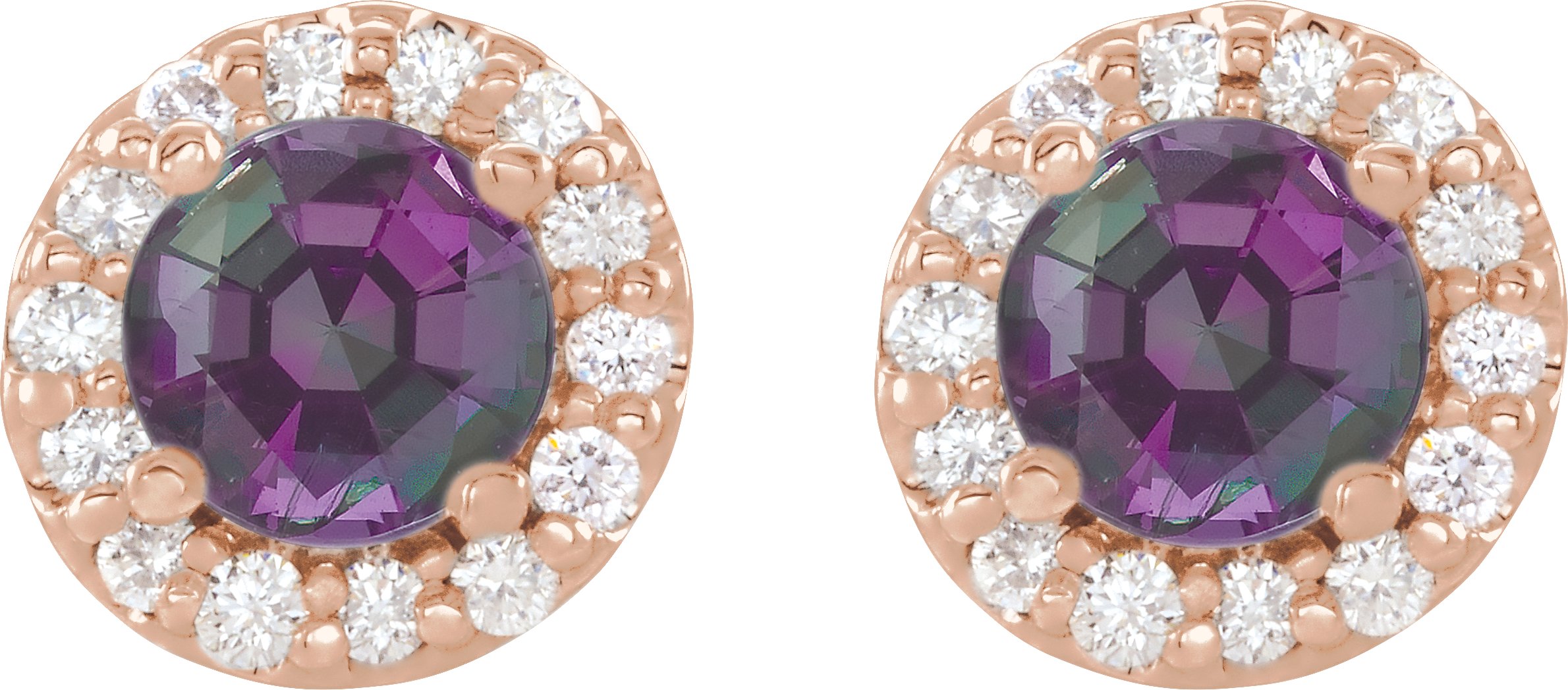 14K Rose Alexandrite & 1/6 CTW Diamond Earrings
