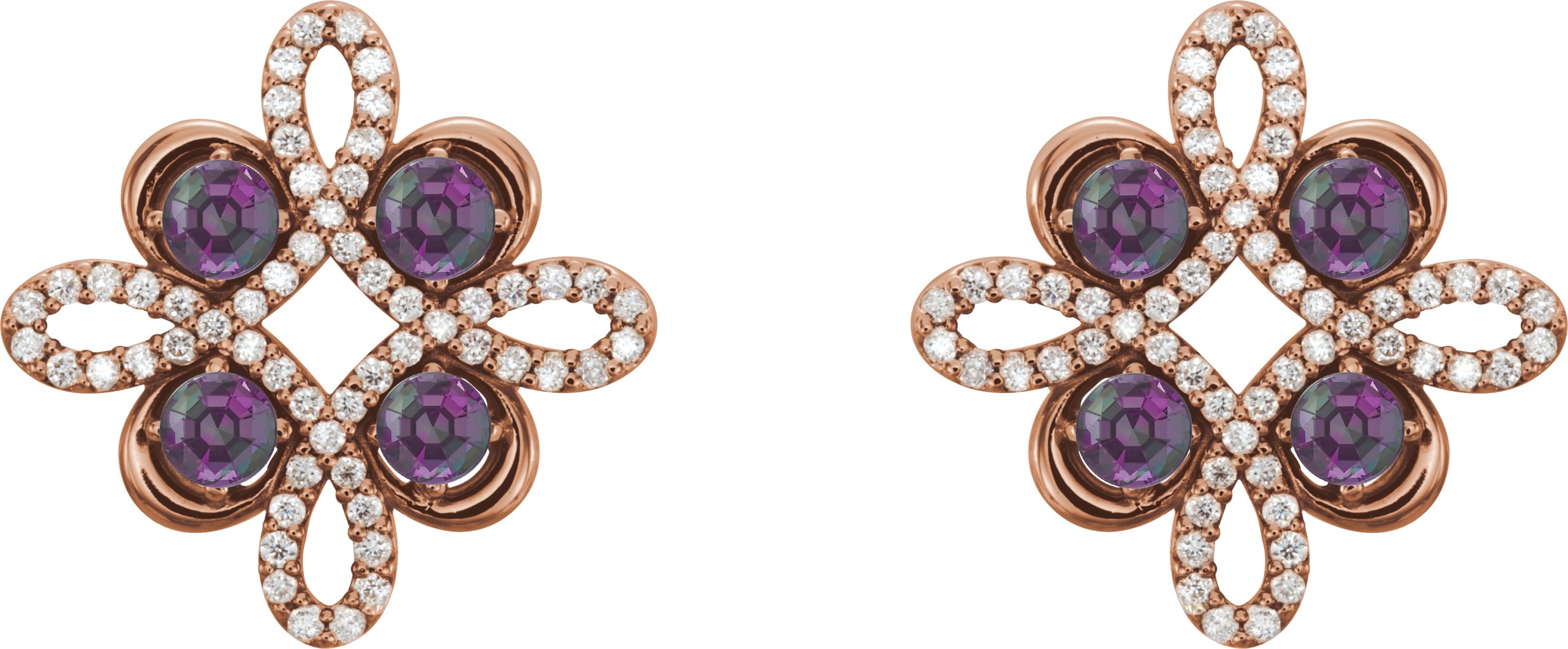 14K Rose Alexandrite and .25 CTW Diamond Earrings