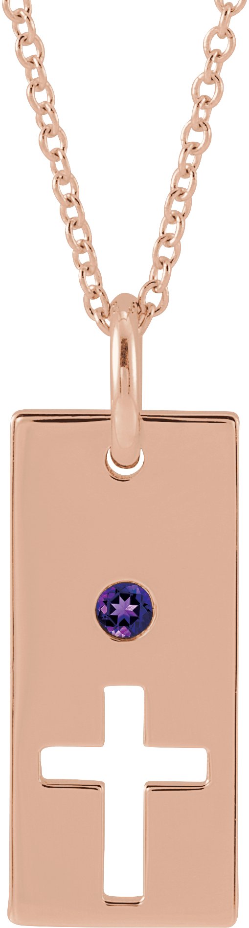 14K Rose Amethyst Cross Bar 16 18" Necklace Ref. 17077719