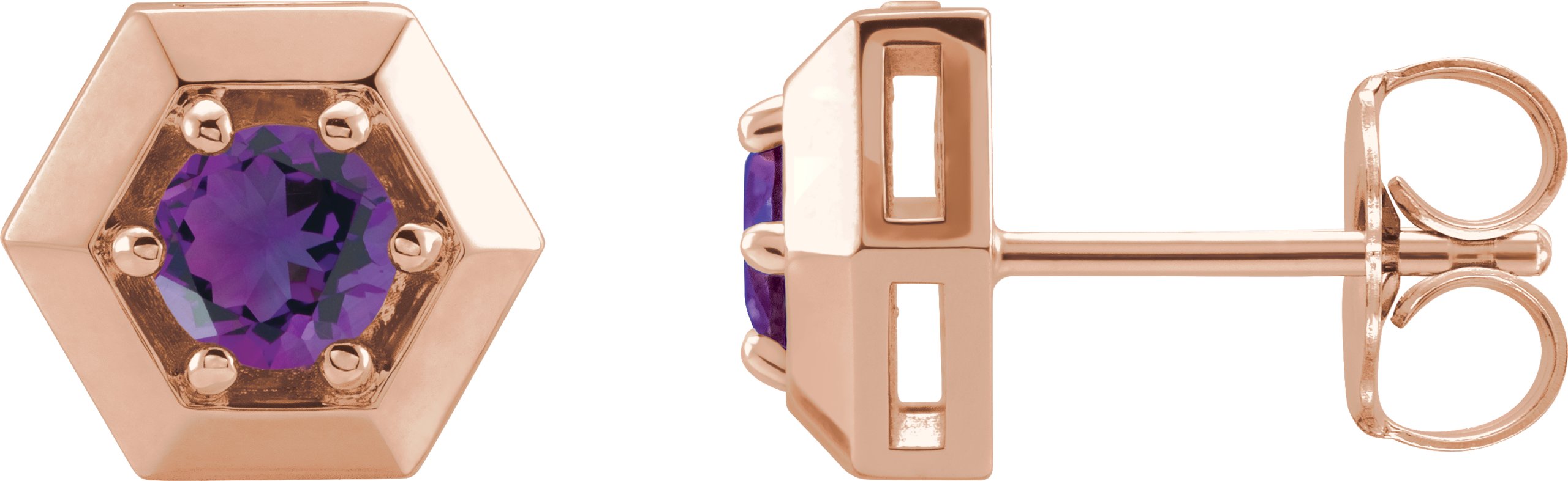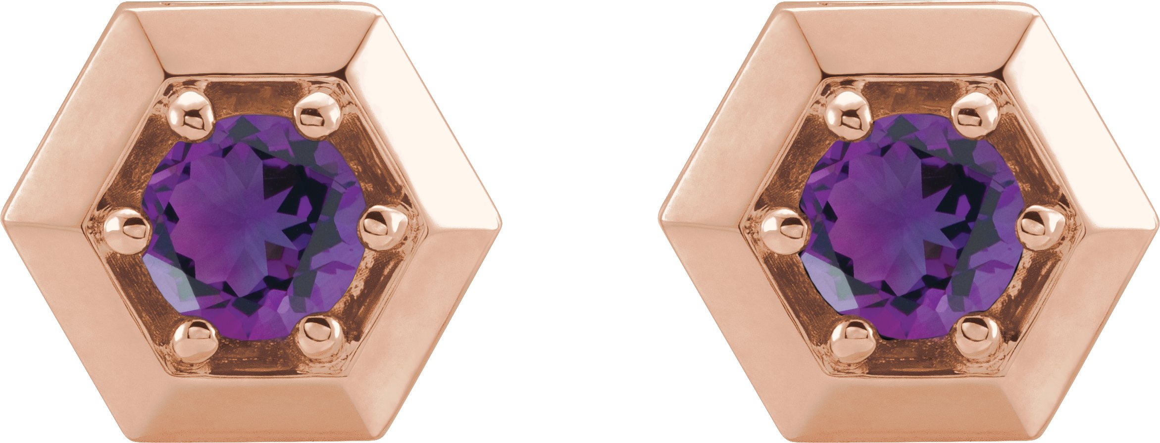14K Rose Amethyst Geometric Earrings