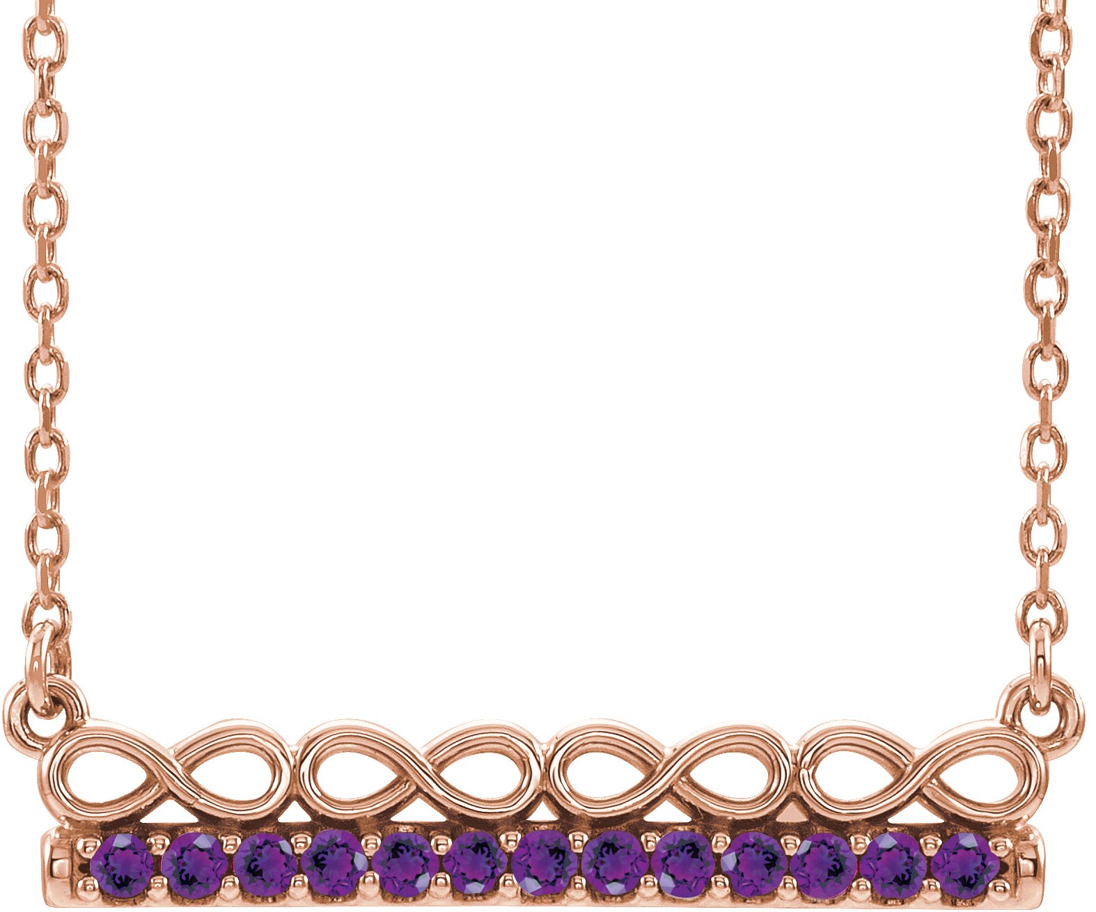14K Rose Amethyst Infinity Inspired Bar 16" Necklace Ref. 14800942