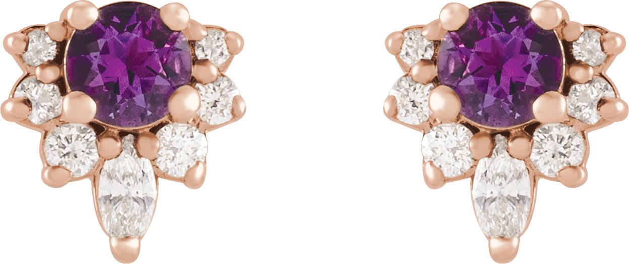 14K Rose Amethyst & 1/6 CTW Diamond Earrings