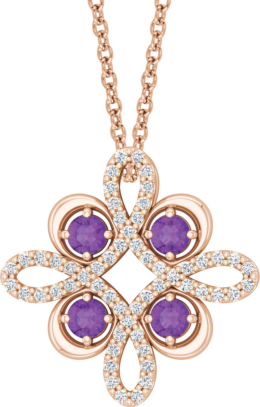 14K Rose Amethyst and .17 CTW Diamond Clover 18 inch Necklace