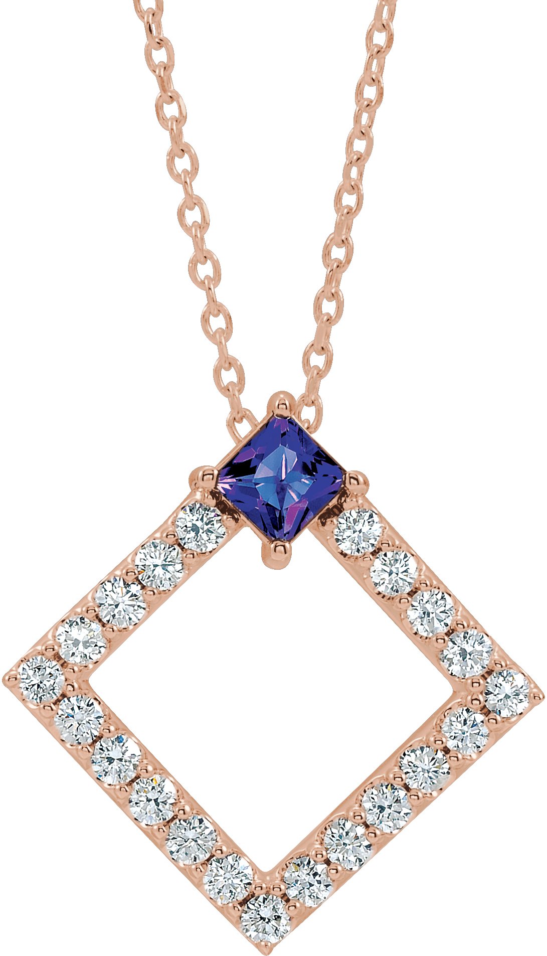 14K Rose Amethyst and .375 CTW Diamond 16 18 inch Necklace