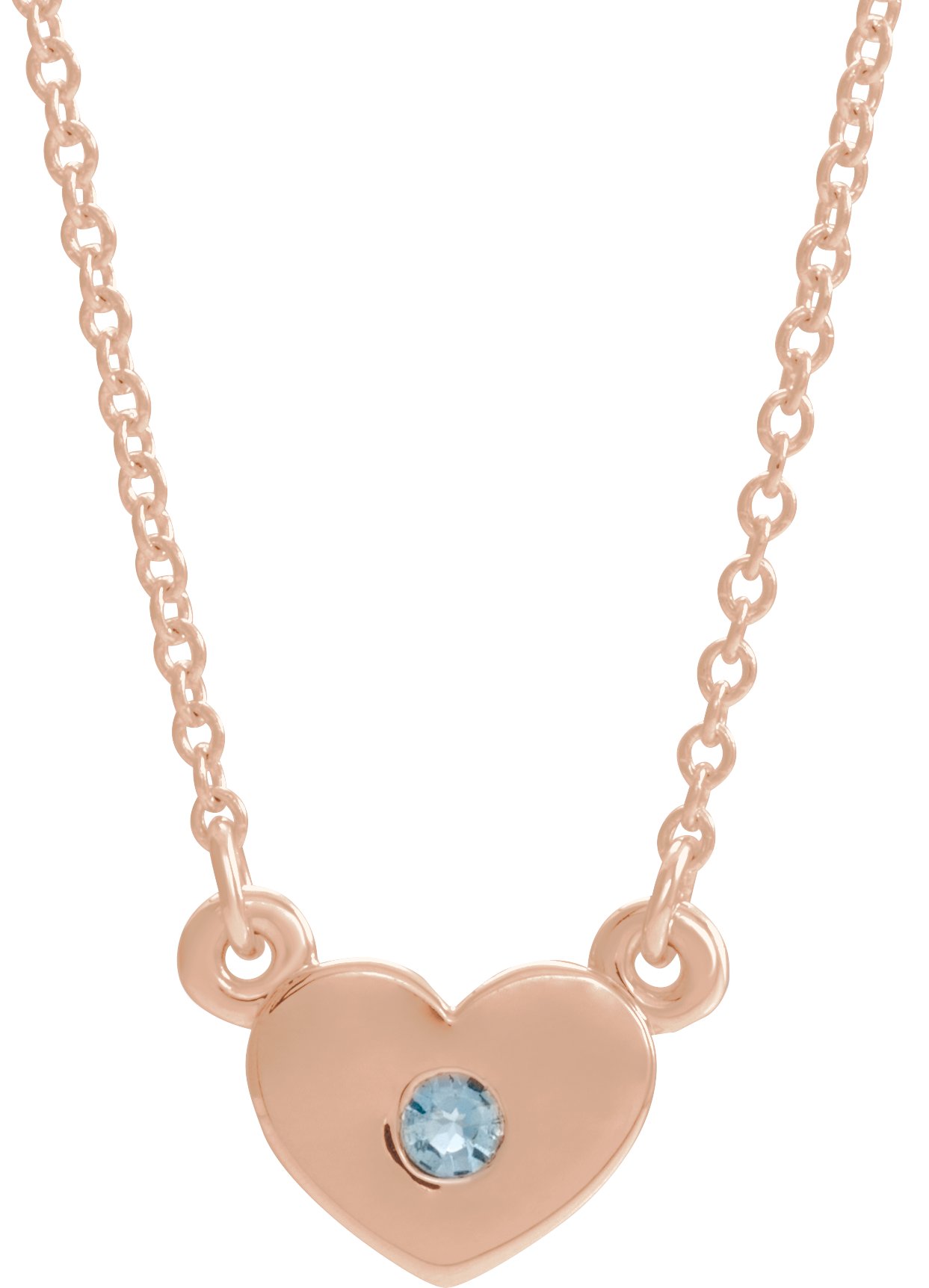 14K Rose Aquamarine Heart 16 inch Necklace