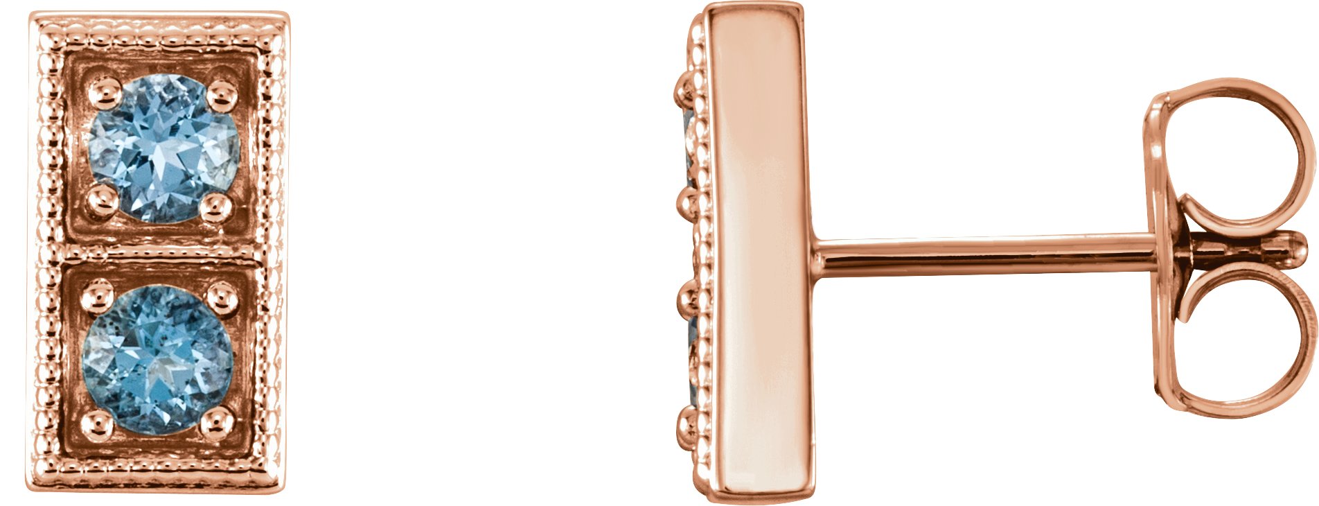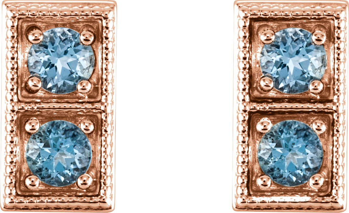 14K Rose Aquamarine Two Stone Earrings