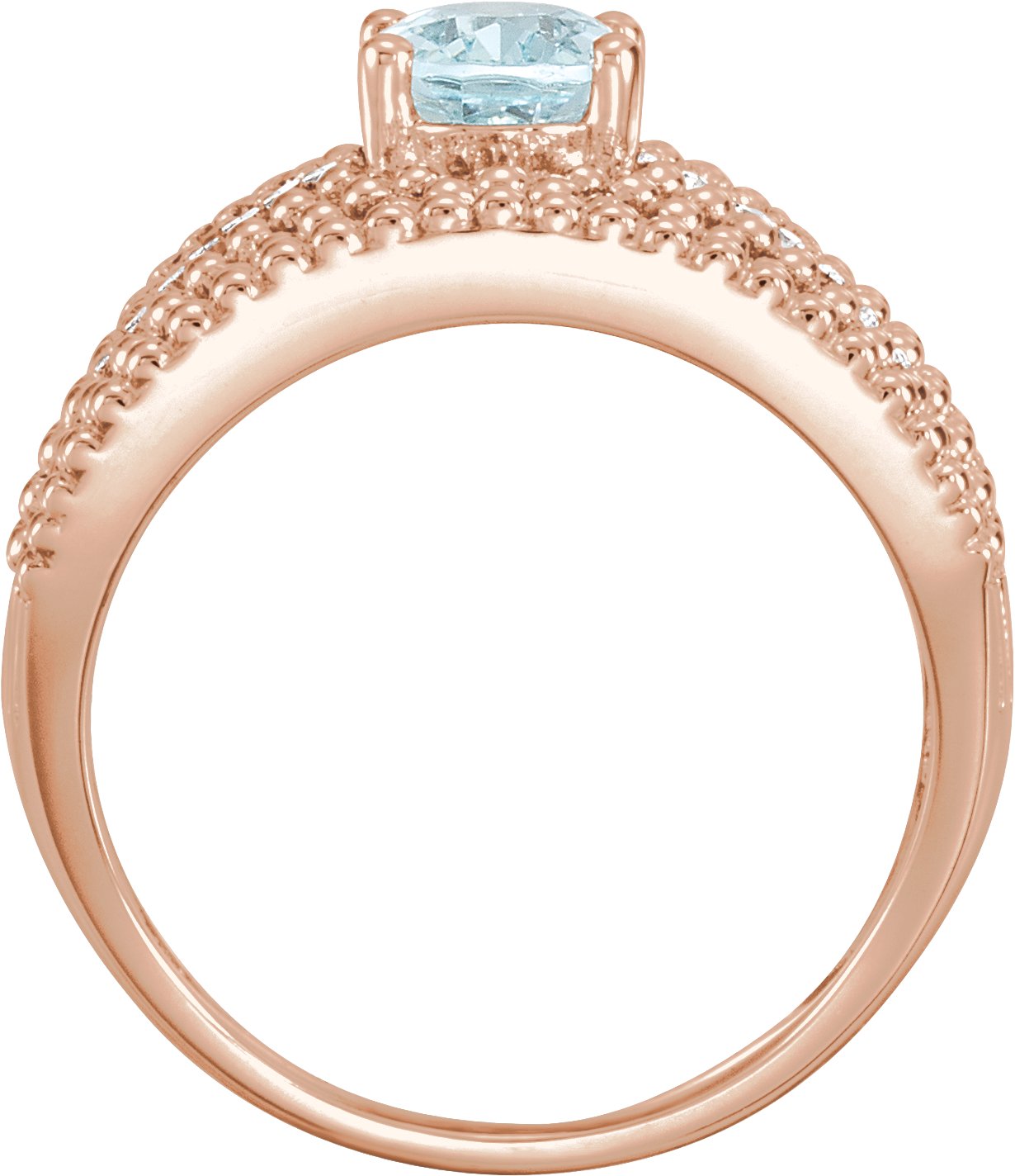 14K Rose Aquamarine and .17 CTW Diamond Ring