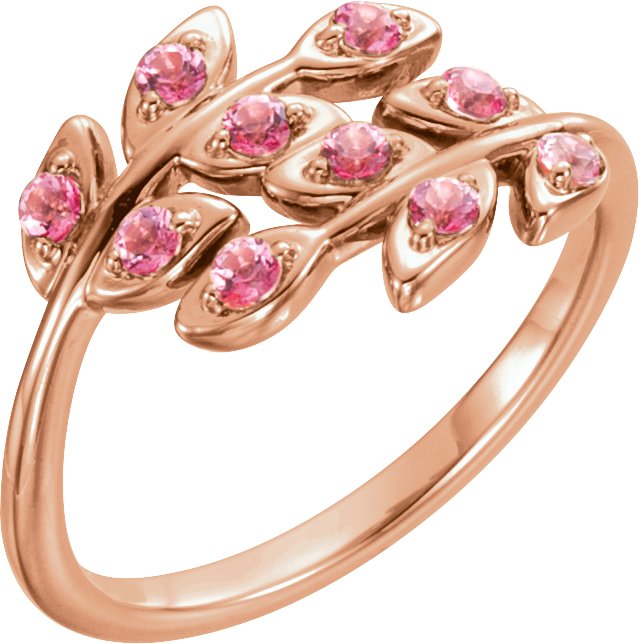 14K Rose Baby Pink Topaz Leaf Design Ring