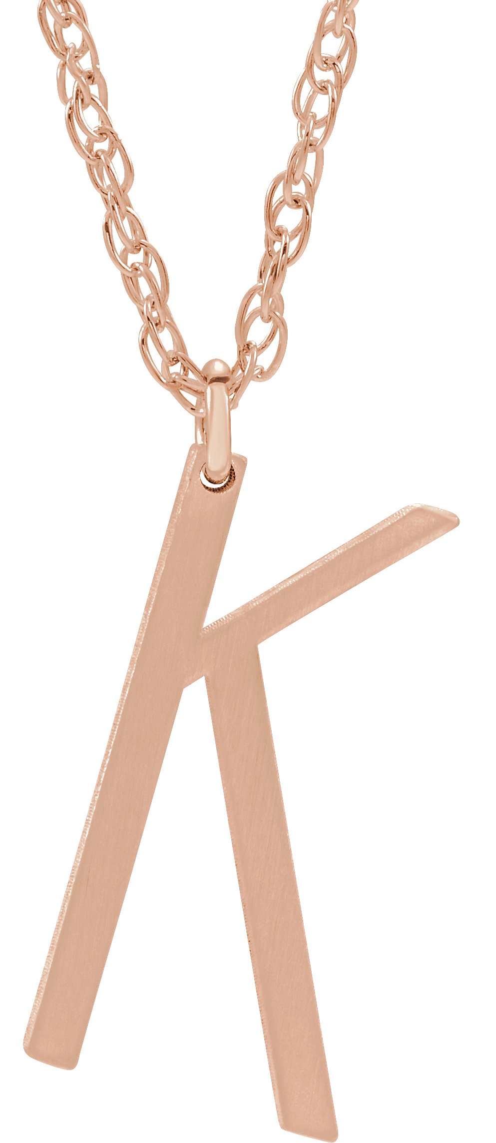 14K Rose Block Initial K 16 18" Necklace with Brush Finish Ref. 16047420