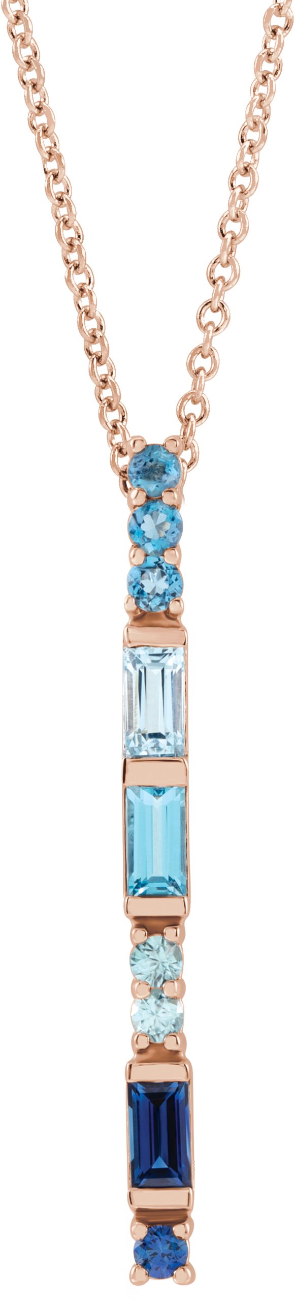 14K Rose Blue Multi Gemstone Bar 16 18 inch Necklace