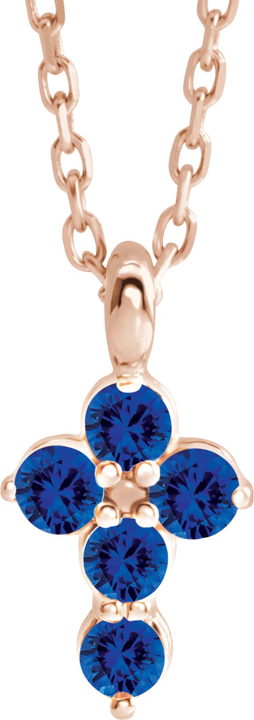 14K Rose Blue Sapphire Cross 16 18" Necklace Ref. 16238384