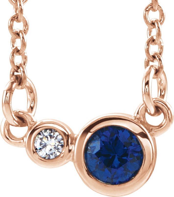 14K Rose Blue Sapphire & .03 CTW Diamond 18 inch Necklace
