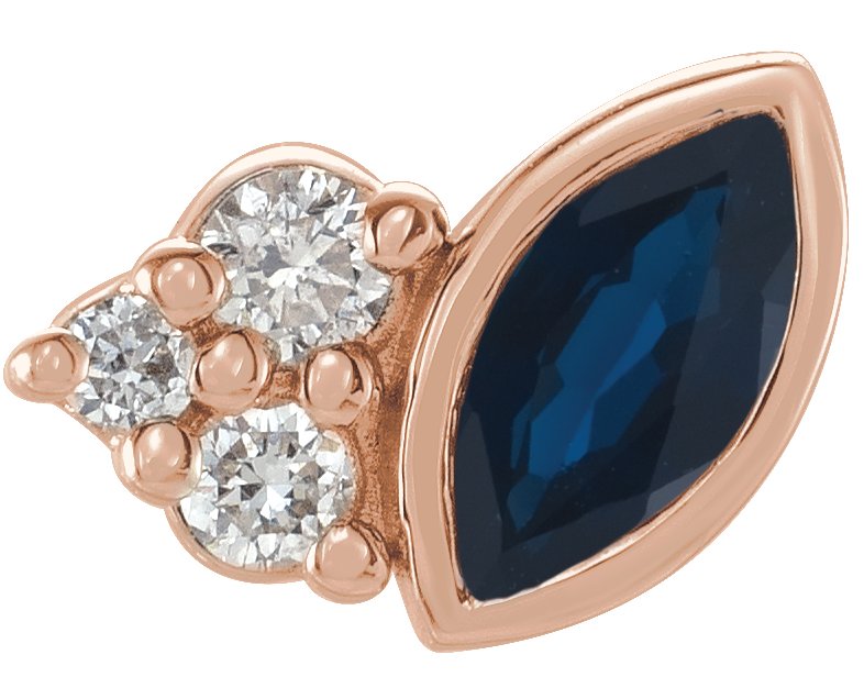 14K Rose Blue Sapphire and .03 CTW Diamond Right Earring