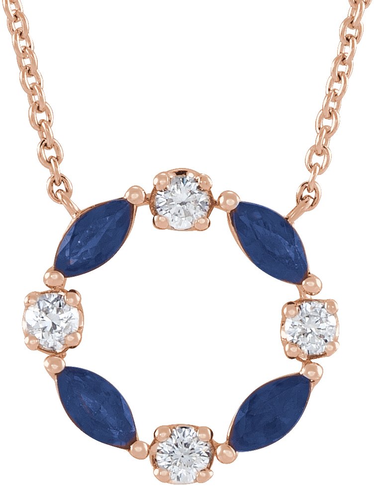 14K Rose Blue Sapphire and .1 CTW Diamond Circle 18 inch Necklace