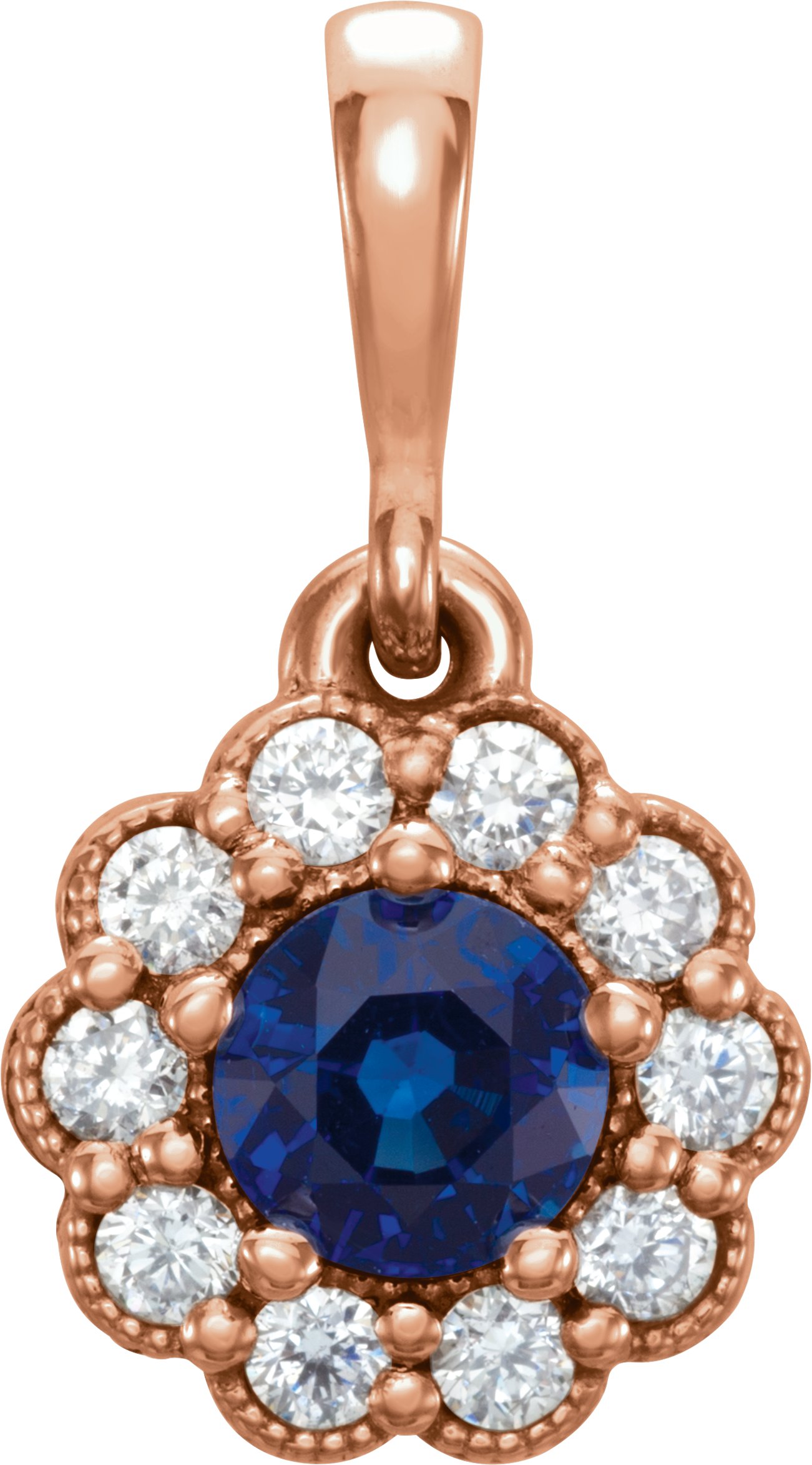 14K Rose Blue Sapphire & 1/8 CTW Diamond Pendant