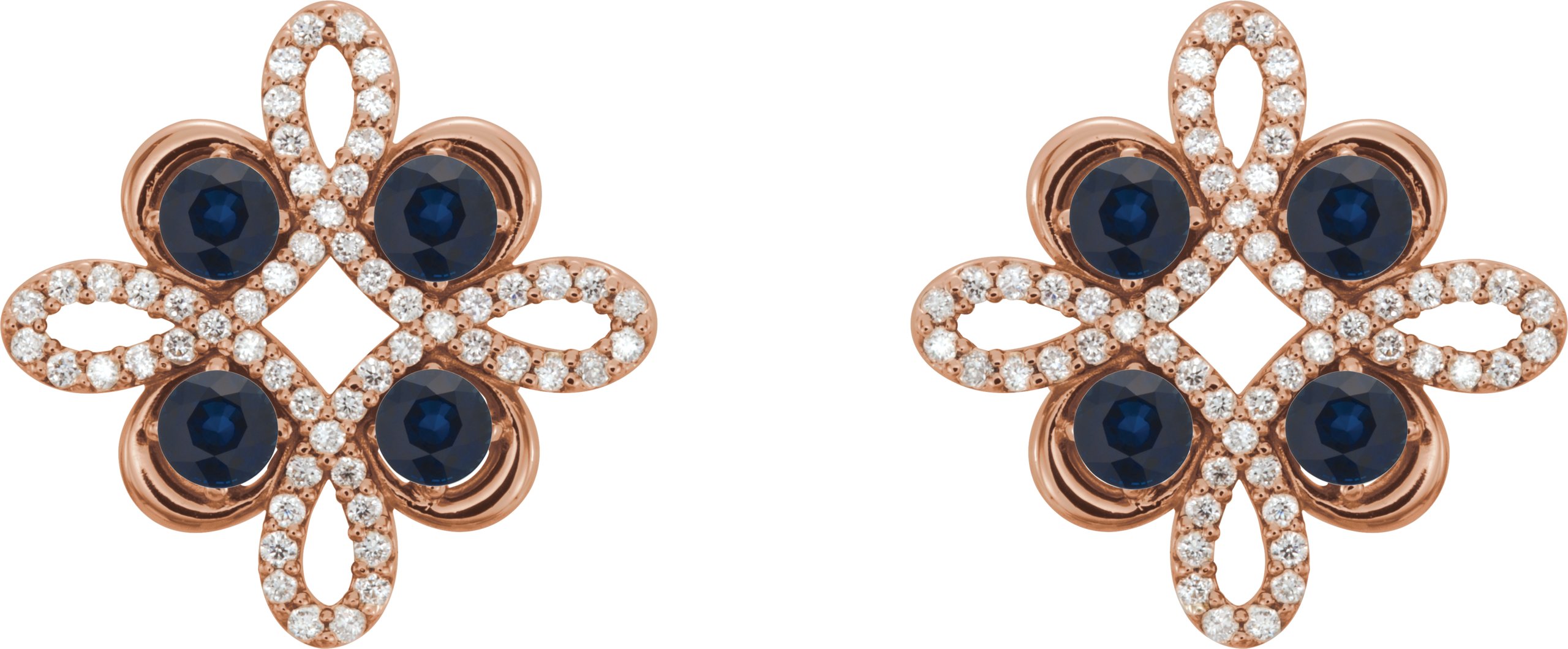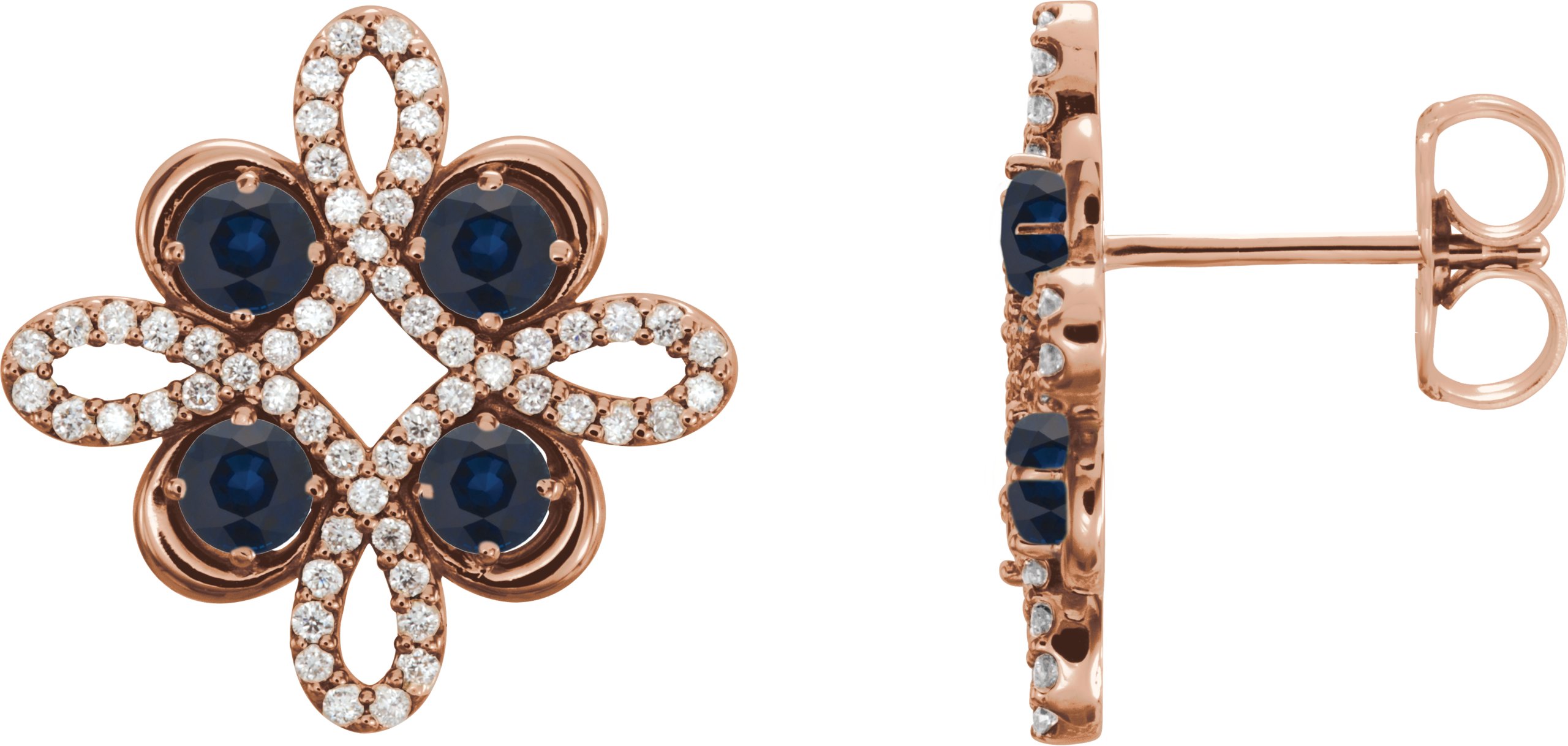 14K Rose Blue Sapphire and .25 CTW Diamond Earrings