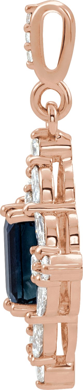 14K Rose Blue Sapphire & 3/8 CTW Diamond Pendant