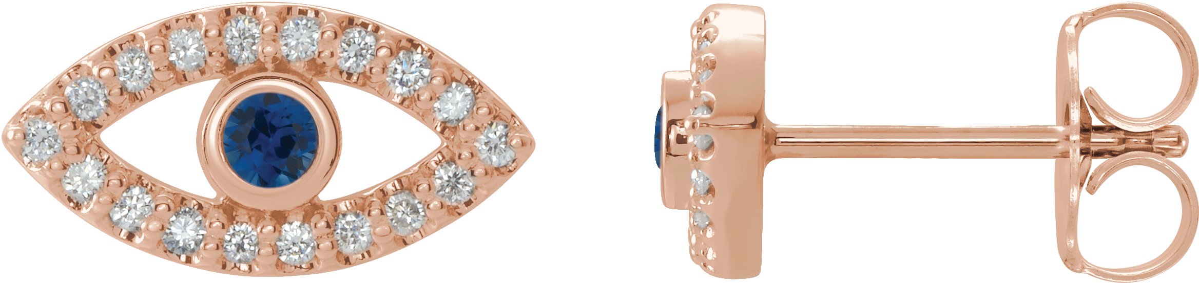 14K Rose Blue Sapphire & White Sapphire Earrings
