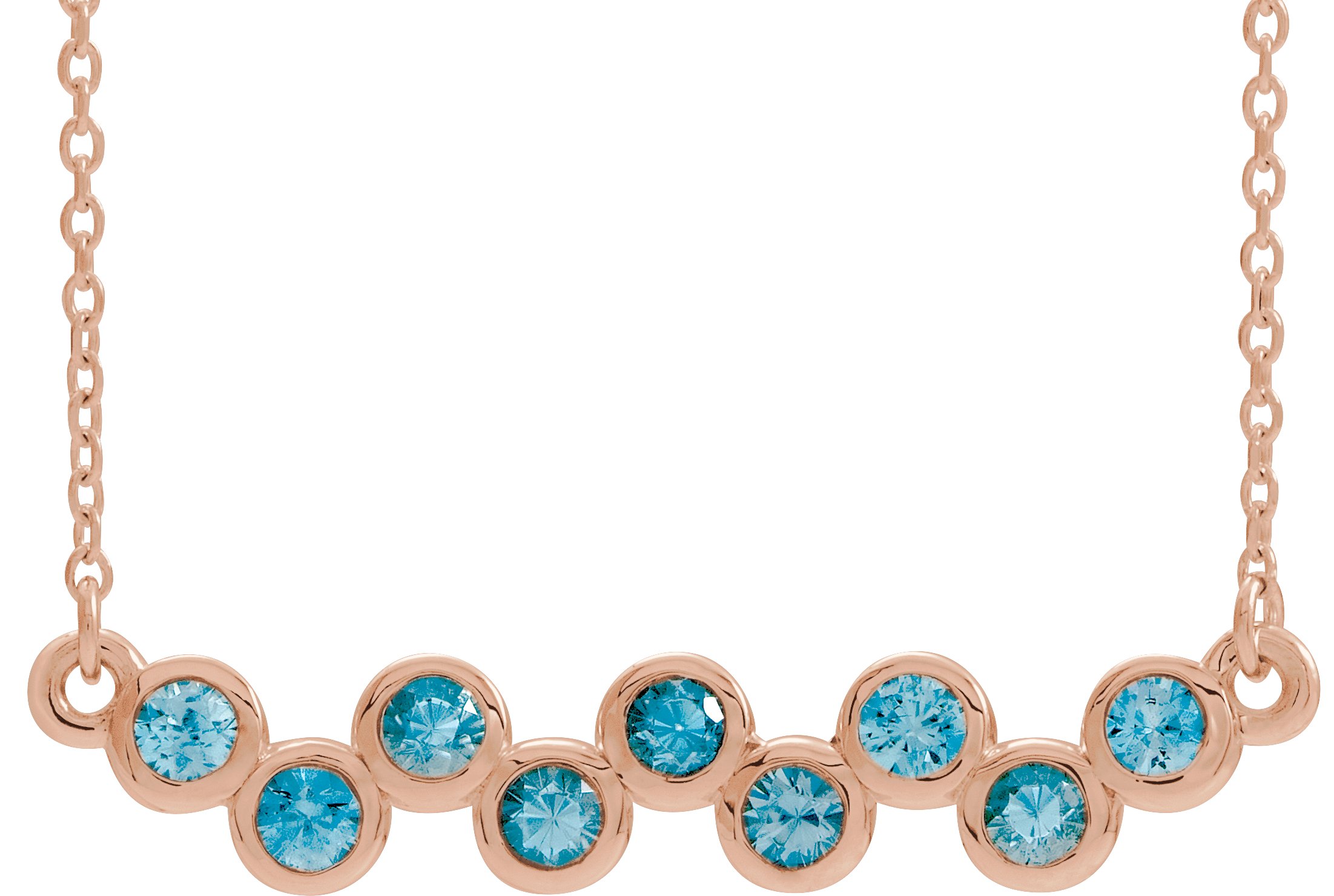 14K Rose Blue Zircon Bezel Set Bar 16 18" Necklace Ref. 14200033