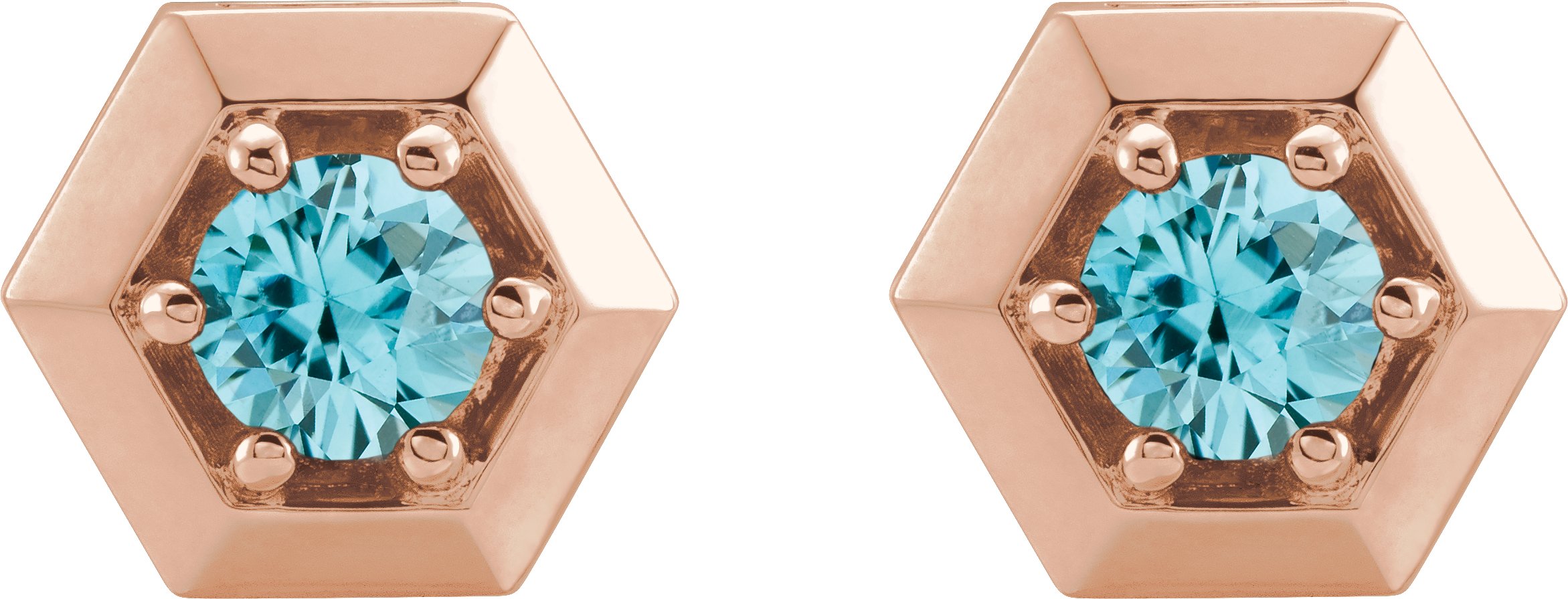 14K Rose Blue Zircon Geometric Earrings