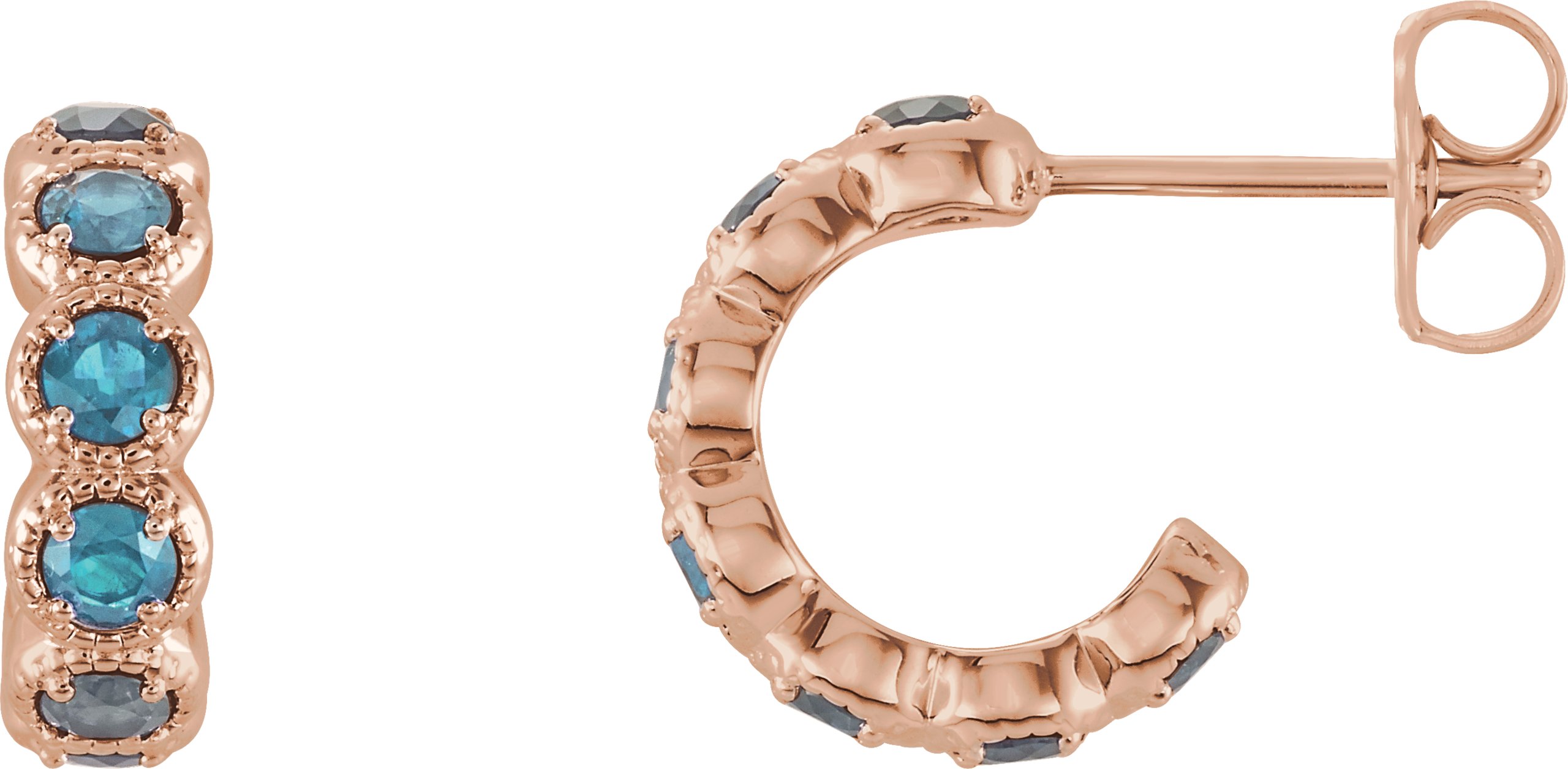 14K Rose Blue Zircon Hoop Earrings