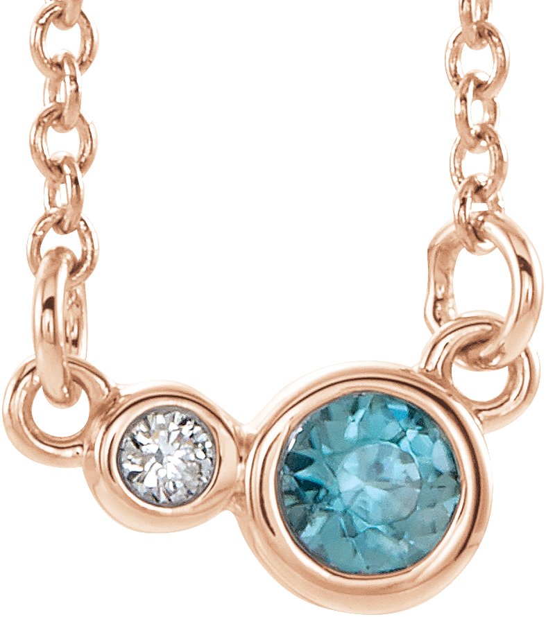 14K Rose Blue Zircon & .03 CTW Diamond 16 inch Necklace
