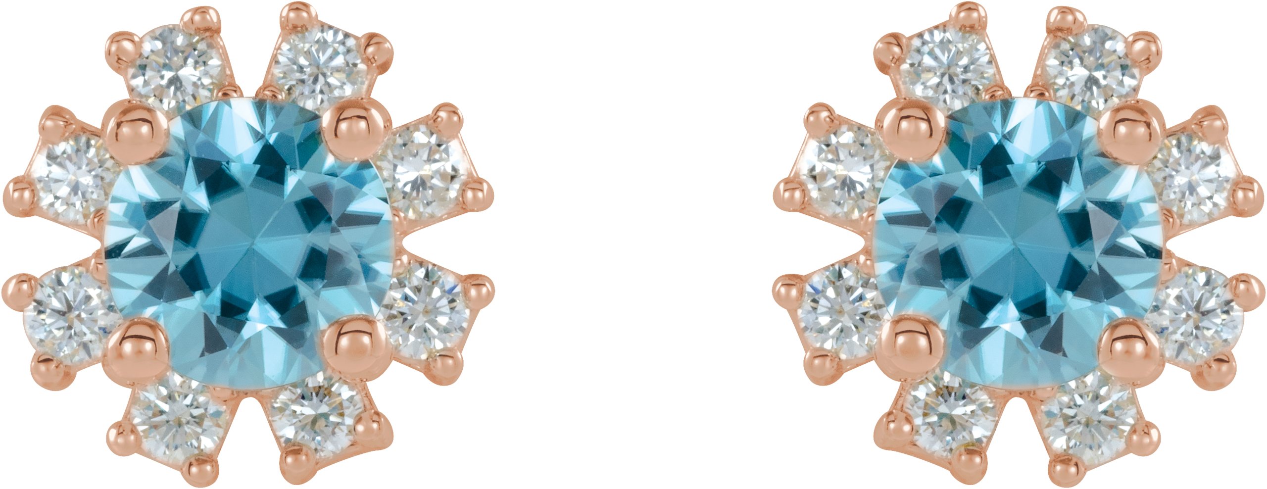 14K Rose Blue Zircon and .07 CTW Diamond Earrings