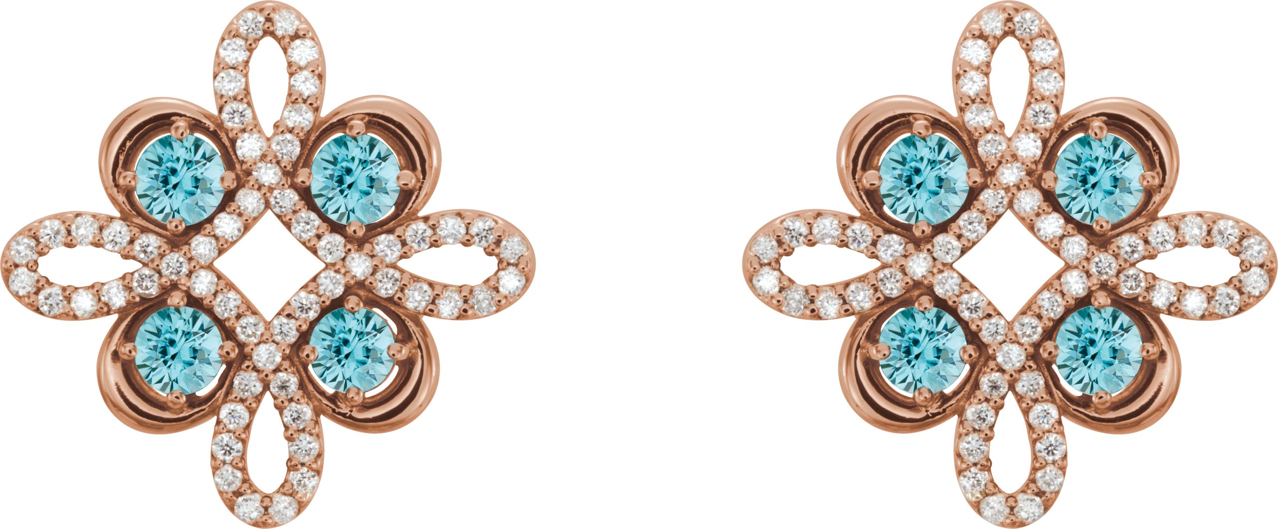 14K Rose Blue Zircon and .25 CTW Diamond Earrings