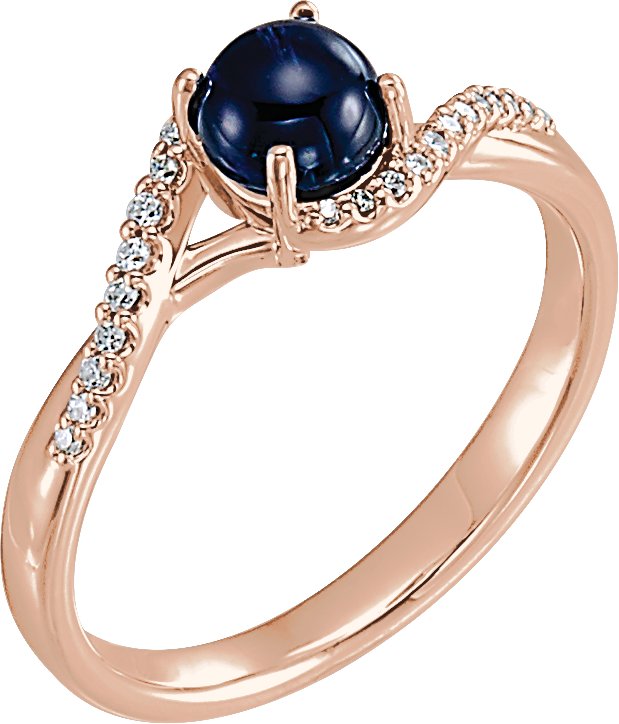 14K Rose Cabochon Blue Sapphire and .08 CTW Diamond Ring