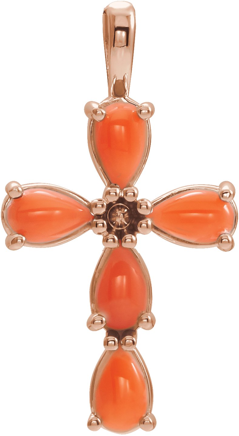 14K Rose Cabochon Pink Coral Cross Pendant Ref. 15303498