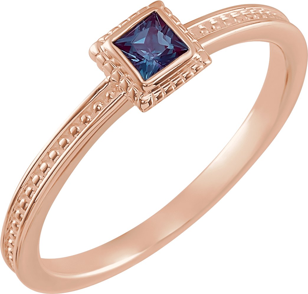 14K Rose Chatham Created Alexandrite Stackable Family Ring