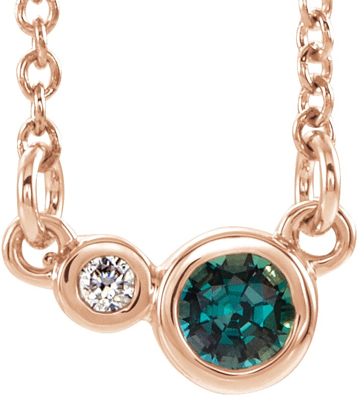 14K Rose Chatham Created Alexandrite & .03 CTW Diamond 16 inch Necklace