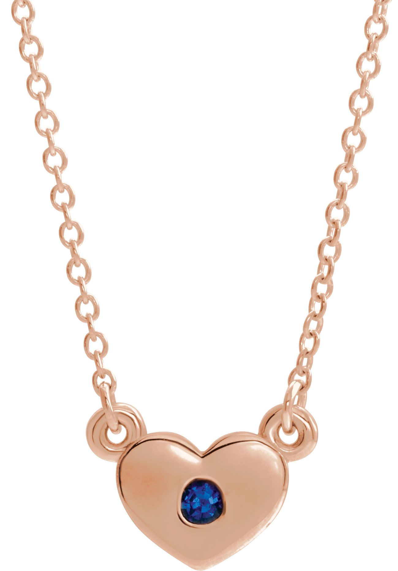 14K Rose Chatham Created Blue Sapphire Heart 16 inch Necklace